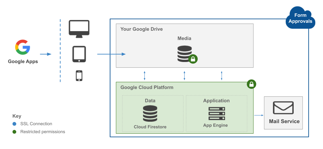 Protecting customer data is fundamental to how we build and operate Form Approvals. Our security program is aligned with industry standards and is underpinned by Google Cloud Platform's infrastructure. This page provides an overview of the technical and organizational measures we employ to safeguard your data.
